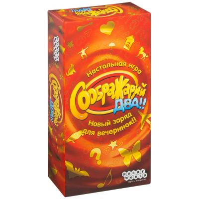 «Соображарий Два!!» — продолжение настольного суперхита, который стал неотъемлемой частью вечеринок и семейных посиделок. Игроков ждут новые увлекательные задания. Кто первым вспомнит денежную единицу на букву «Ф»? Сколько слов в рифму вы назовёте за минуту? Что начинается с буквы «Ч» или «З» и при этом кусается? Будьте находчивы и сообразительны, быстрее всех подбирайте нужные слова, и победа от вас не ускользнёт!